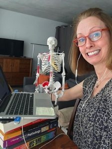 It’s been a lot of fun to watch Soma students adapt and thrive during this time. Our students have been great about online classes. Our instructors have gotten creative as well. My goal was to make online classes as much fun for me to teach as they were for the students to experience. I even invested in a skeleton to use as a prop. We named him George, and he’s become a regular part of my classes. I also bought a bunch of huge Post-it notes to use like a chalkboard at home.