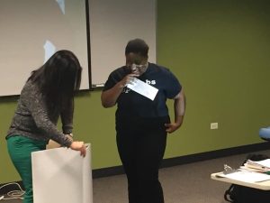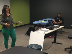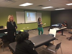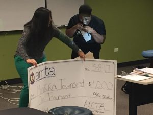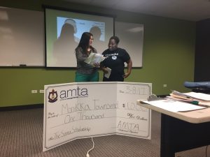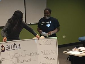 The American Massage Therapy Association has teamed up with Soma with a plan to help ease the financial burdens of a few lucky students by periodically giving out $1,000 scholarships throughout the year.  Our most recent winner is Monikka Townsend, who, as you can see from the pictures, was quite overwhelmed with emotion (there weren’t many dry eyes in the room).